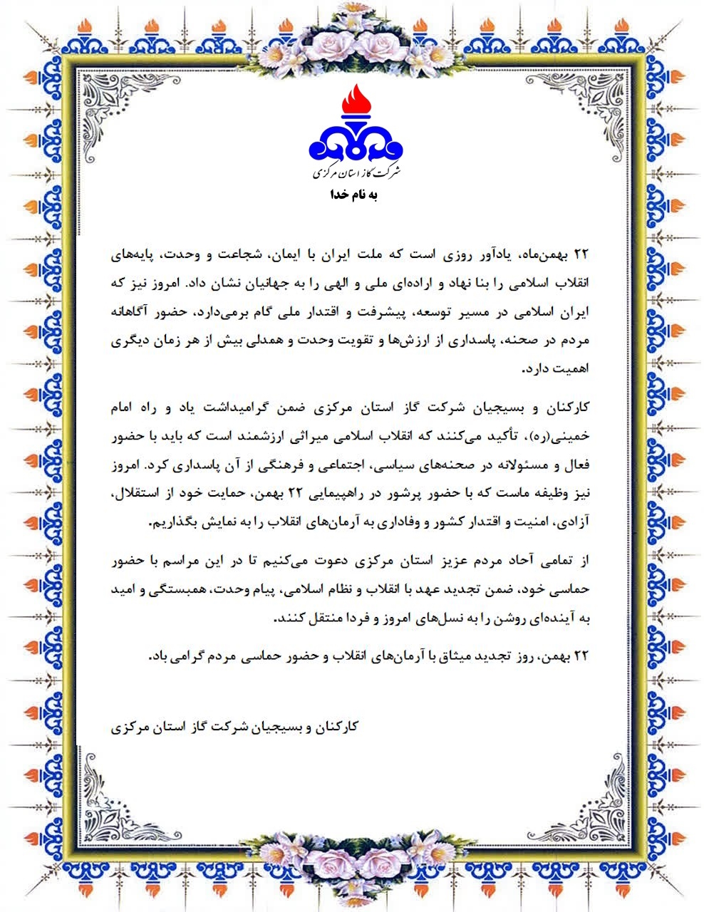 بیانیه کارکنان و بسیجیان شرکت گاز استان مرکزی به مناسبت ۲۲ بهمن سالروز پیروزی شکوهمند انقلاب اسلامی بیانیه کارکنان و بسیجیان شرکت گاز استان مرکزی به مناسبت ۲۲ بهمن سالروز پیروزی شکوهمند انقلاب اسلامی سه شنبه ۲۱ بهمن ۱۴۰۴ میانگین امتیاز کاربران: 0.0 (0 رای) 12345 امتیاز 12345 برای امتیاز باید عدد وارد کنید نام را وارد کنید ایمیل صحیح نیست ایمیل نمایش داده شود. تعداد کاراکتر باقیمانده: 500 نظر خود را وارد کنید بازخوانی بازخوانی پس از انتشار این نظر، به من اطلاع داده شود. ارسال