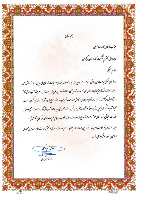 در متن این لوح، بر نقش و همراهی مدیران و کارکنان شرکت گاز استان مرکزی در اجرای طرحهای بهینهسازی مصرف آب، برق و گاز در سطح استان و تقویت پایداری شبکه انرژی تأکید شده است.